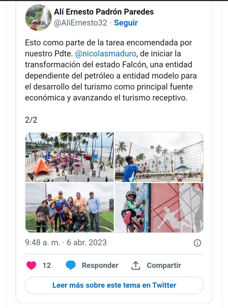 De acuerdo a una publicación en su cuenta de la red social Twitter el ministro expuso que el proyecto forma parte de una transformación de la región para el desarrollo del turismo “esto como parte de la tarea encomendada de iniciar la transformación del estado Falcón, una entidad dependiente del petróleo a entidad modelo para el desarrollo del turismo como principal fuente económica y avanzando en el tema del turismo receptivo”.