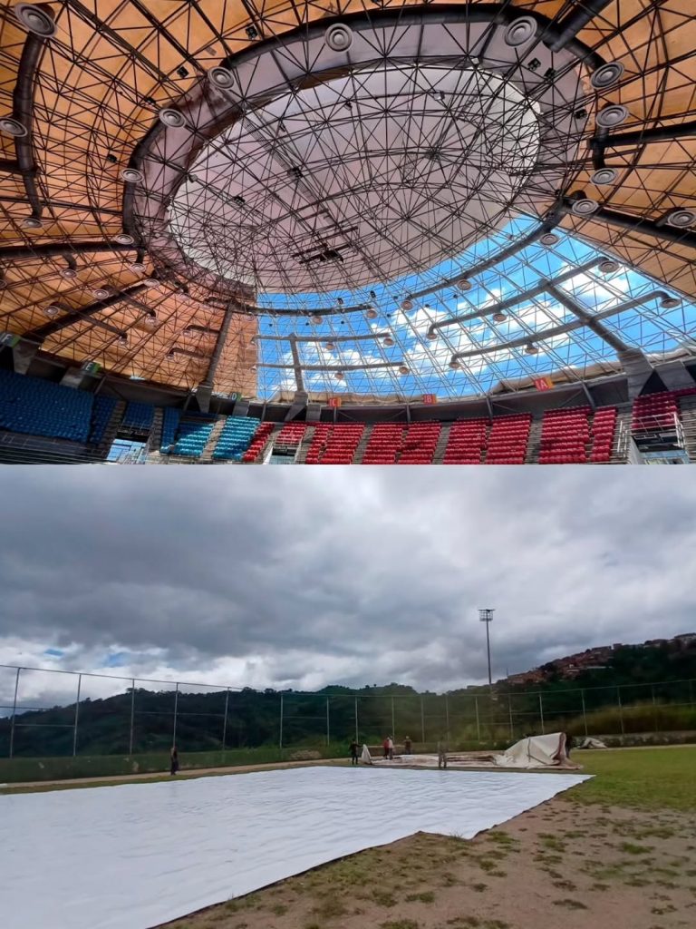 Además, recalcó que son aproximadamente tres mil 800 metros cuadrados de lona los que se van a sustituir en esta gran infraestructura, que recibe una rehabilitación integral.