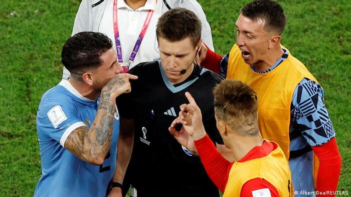Los jugadores uruguayos protestaron de forma muy airada su disgusto por la actuación del colegiado germano Daniel Siebert y del VAR, al que protestaron de forma vehemente. Incluso Giménez llegó a golpear a un oficial de FIFA y Cavani golpeó el monitor de vídeo del árbitro, que cayó al suelo.