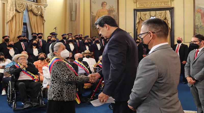 El jefe de Estado expresó a los cultores: “Bendiciones y felicidades. Están en esta casa del Pueblo, con mucho sentimiento dedicarle a cada uno de ustedes, a la identidad, a la cultura, un justo reconocimiento merecido, cuando la Patria y la República les entrega la Orden Libertadores y Libertadoras de Venezuela”.