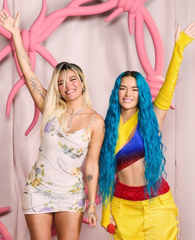 La primera figura recuerda la presentación que tuvo la artista en el Festival de Música Coachella en 2022. En ese momento, la intérprete de Bichota llevó un conjunto que hizo referencia a la bandera colombiana, compuesto por dos piezas en las que el amarillo, azul y rojo fueron los protagonistas, además, llevaba su característico cabello en color verde.