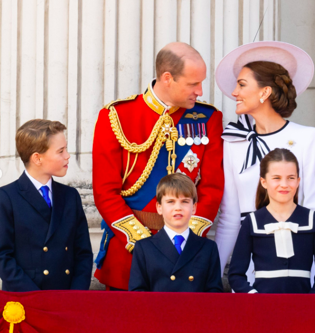 Mientras su esposo, el Príncipe William, cumplía su deber como Coronel de la Guardia Galesa, Kate acompañó a sus hijos, el Príncipe George, la Princesa Charlotte y el Príncipe Louis, en una carroza ceremonial. Juntos hicieron una procesión desde el Palacio de Buckingham hasta Horse Guards Parade, donde el Rey Carlos III recibió el saludo oficial.