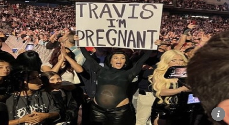 Con una pancarta que decía «Travis, estoy embarazada», Kourtney no soló le informó a su pareja del bebé que viene en camino, si no a todo el público.