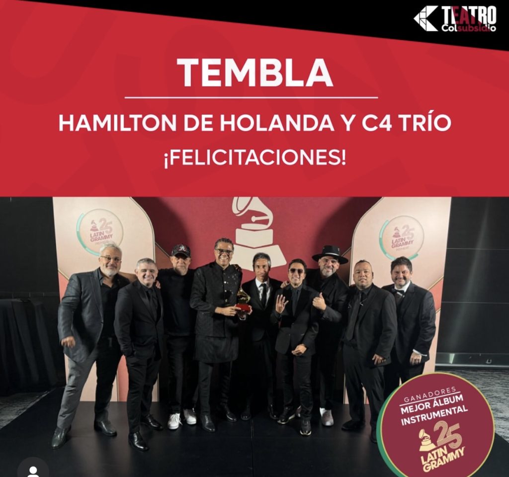 La agrupación C4Trío ganó en la categoría de «Mejor Álbum Instrumental», por su álbum «Tembla» en el que trabajaron junto al bandolinista brasilero, Hamiltos de Holanda.