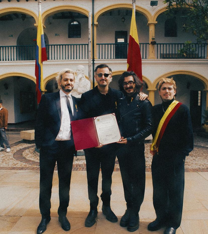«Han llevado el nombre de la ciudad a lo más alto, dejando una huella imborrable en cada escenario que pisan», dijo Sastoque antes de la entrega de las cruces plateadas y la banda de los colores de Bogotá que portó Martín Vargas, el más joven de la agrupación.