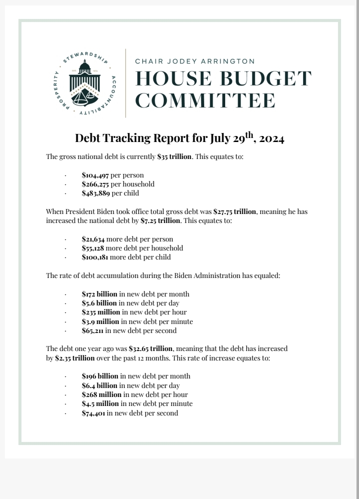 «Cuando el presidente [Joe] Biden asumió el cargo, la deuda bruta total era de 27,75 billones de dólares, lo que significa que aumentó la deuda nacional en 7,25 billones de dólares», señala el comunicado.