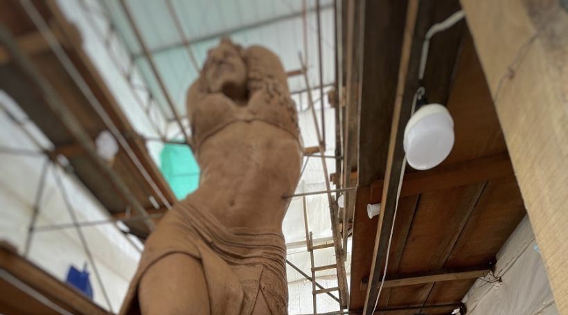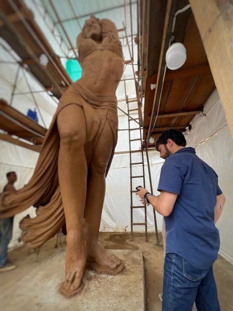 “Cumplimos 45 días de trabajo. Ya la parte de abajo está definida y vamos poco a poco subiendo en los detalles. Después de terminar el modelado sacamos el molde y entramos a la etapa de fundición, que se hará por ‘anillos’ para luego unirlos y finalizar”, indicó.
