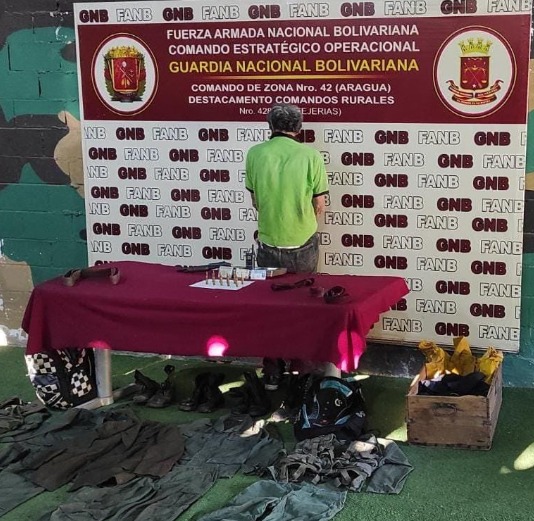 Tal es el caso de la aprehensión de un hombre indocumentado en Las Tejerías, en los esfuerzos por erradicar a los generadores de violencia y perturbadores de la paz social. Al detenido se le incautó material de guerra y pertrechos militares.