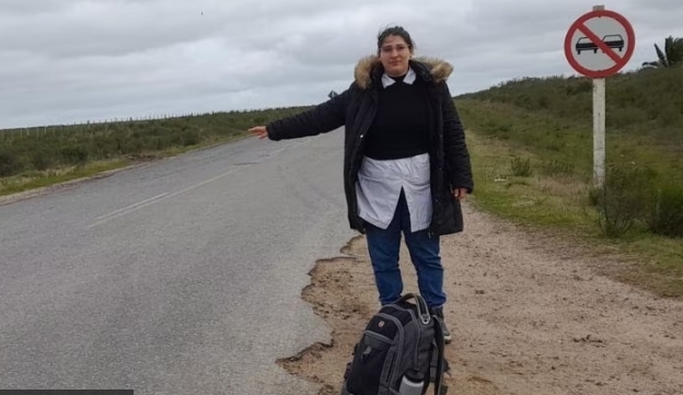 Son las 8 de una gélida mañana de invierno y María Domínguez (29 años) está en la entrada de la pequeña ciudad de Florida, 90 kilómetros al norte de Montevideo, intentando que algún chofer se detenga y le ofrezca un aventón.
