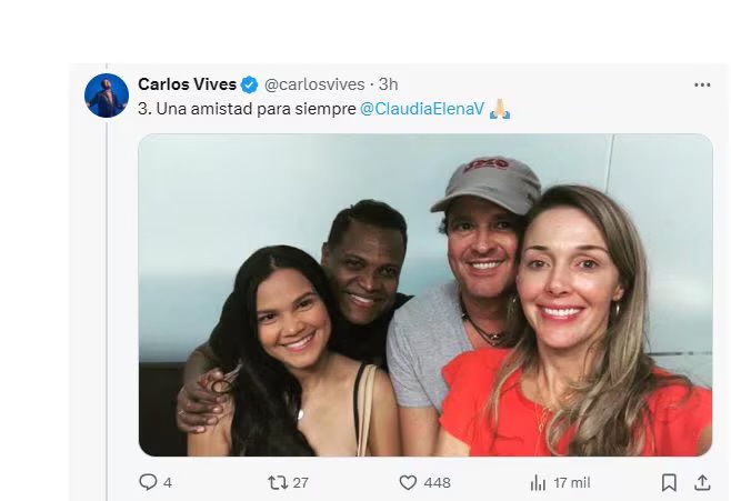 “Una amistad para siempre @ClaudiaElenaV (…) Siempre quiso mis trabajos y los compartió con su familia (sic)”, agregó.