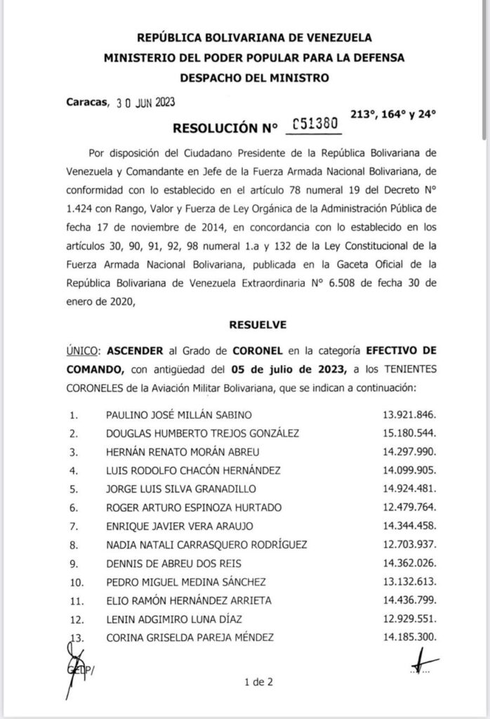 El piloto de combate Cnel (Av) Paulino José Millán Sabino que falleció el día de hoy tras el accidente del Sukhoi 30 de la Aviación Militar Bolivariana, había ascendido este viernes al grado de Coronel, ocupando el puesto número 1 en el orden de mérito. “Nuestro más sentido pésame para sus familiares, compañeros y amigos”.