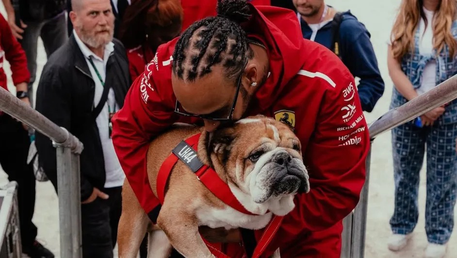 Acompañado de varias fotografía en las redes sociales, Hamilton indicó que el buldog inglés mürió la tarde de este domingo 28 de septiembre, en sus brazos.