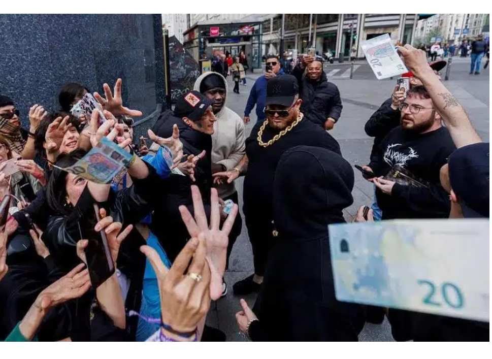 El cantante de música trap, Yung Beef, decidió promocionar su nuevo disco de una manera inusual. Durante una caminata por el centro de Madrid, lanzó 5.000 euros (cerca de 5.500 dólares) al aire.