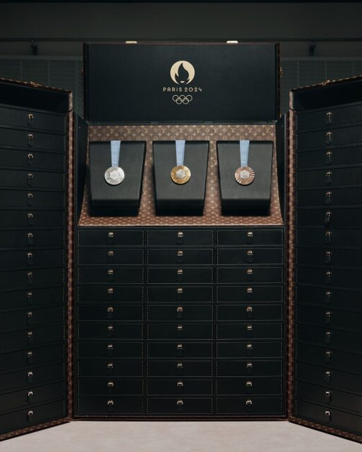La marca de lujo Louis Vuitton reveló detalles de los estuches para medallas inspirados en el clásico tocador «Malle Coiffeuse» de 1859. Estos estuches tienen una capacidad máxima de 468 preseas y se componen de una parte central y dos paneles laterales desplegables.