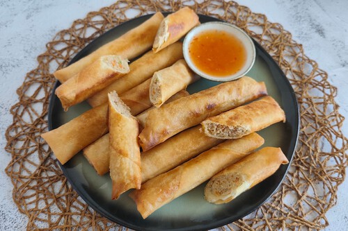 El nombre viene del hokkien lunpia, que significa algo así como «rollo blando» o «crepe fina». Tiene sentido si tienes en cuenta que gran parte de la cocina filipina tiene influencia china, igual que los pancit o algunos dumplings. De ahí también que las llamen Lumpia Shanghai. La clave está en que el relleno no se cocina antes. Se mezcla todo en crudo, se enrolla y se fríe directamente.