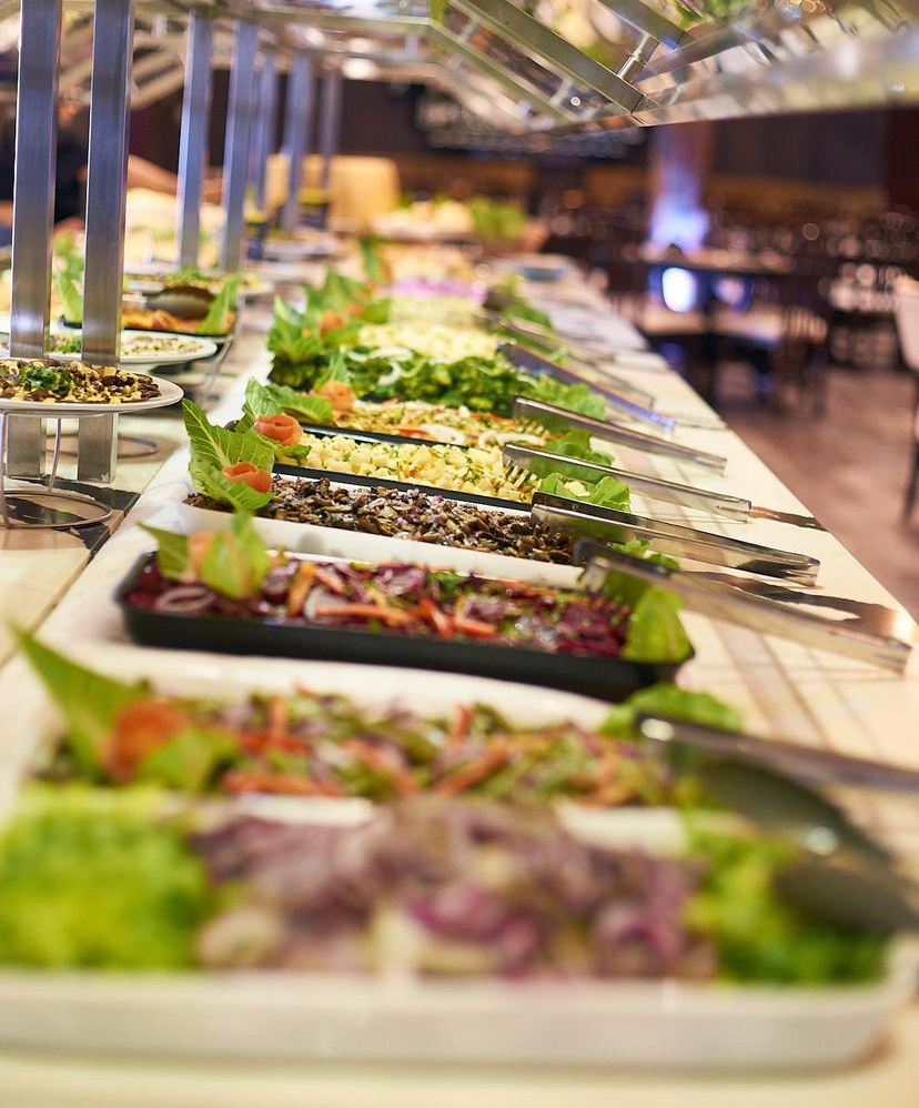 El servicio de Rodizio vale 16.99 dólares, cada persona elije entre variedades de contornos hasta armar el plato que desea, luego al ubicarse un mesa, empiezan a ofrecer los cortes de carnes.