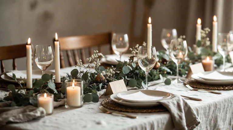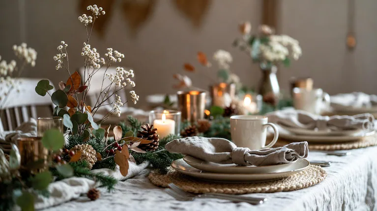 Tres motivos explican este boom de las mesas neutras: Elegancia sencilla, los tonos suaves crean una base armoniosa que luce sin esfuerzo. Versatilidad total, combinan con centros de mesa naturales, velas, ramas secas o detalles metalizados. Ambiente más relajado, elimina la sobrecarga visual típica de la Navidad tradicional.