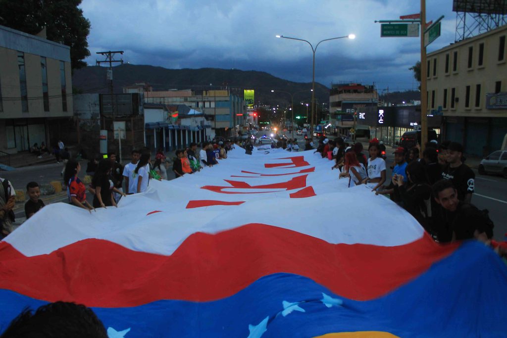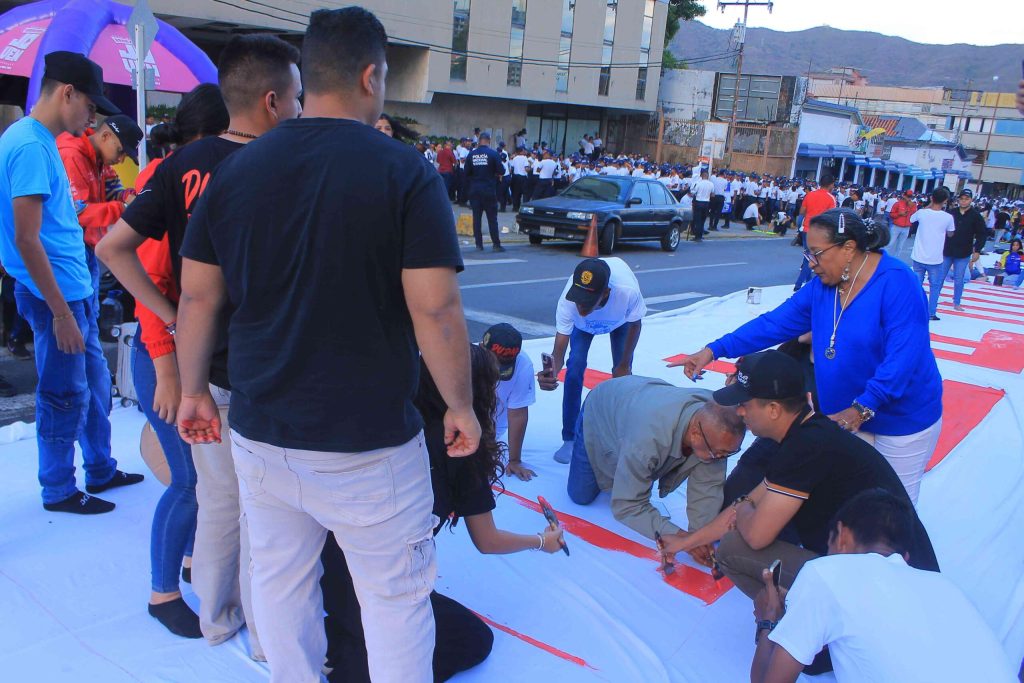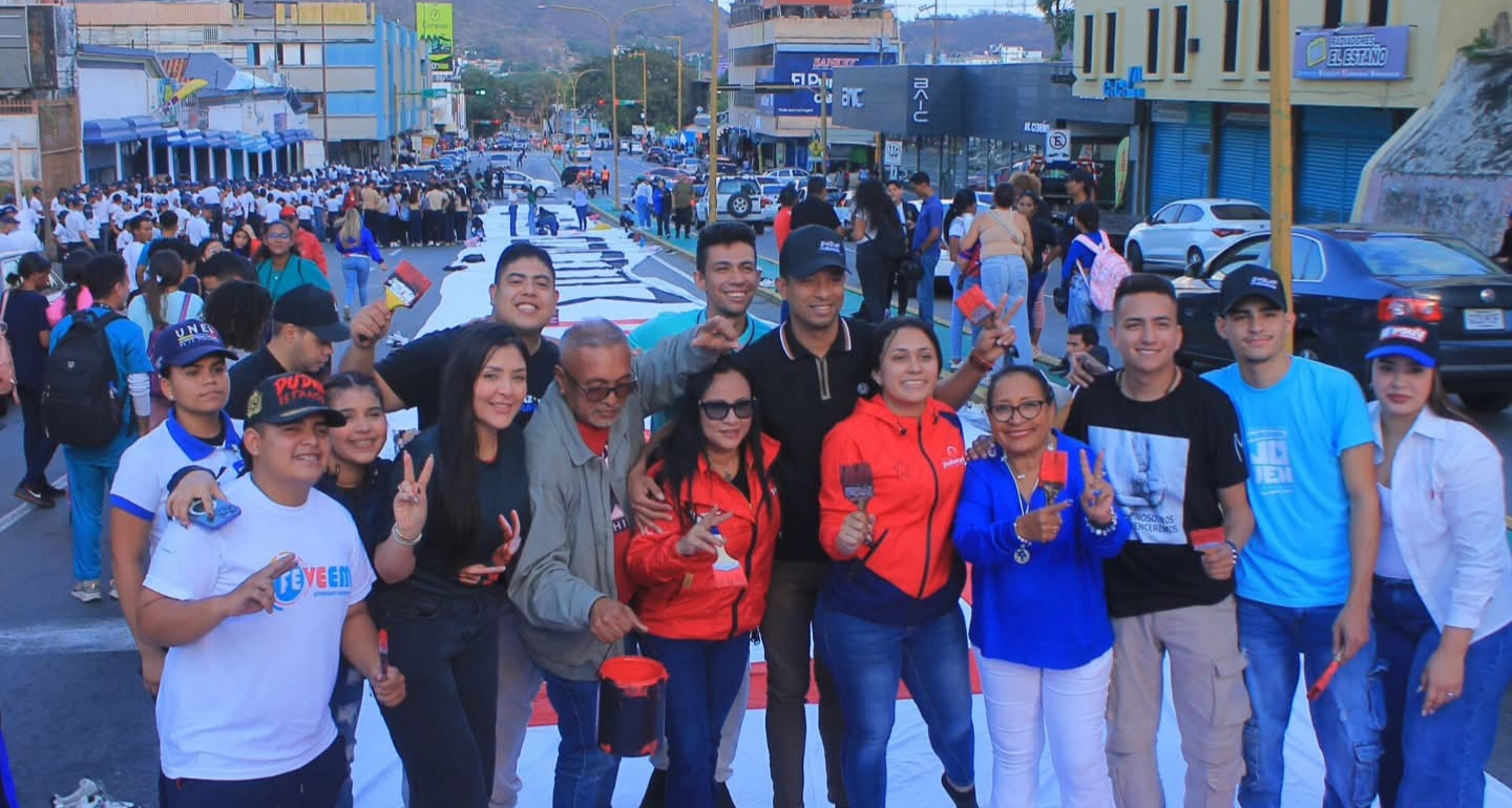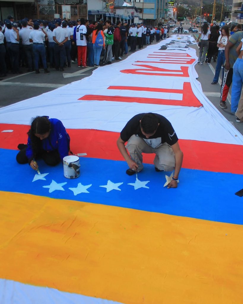 En un acto cargado de emoción y sentimiento patrio, más de mil jóvenes carabobeños elaboraron una pancarta de más de 100 metros en el municipio Valencia para exigir la liberación del presidente Nicolás Maduro y la primera dama Cilia Flores, sêcuestrâdøs por tropas estadounidenses el pasado 3 de enero.