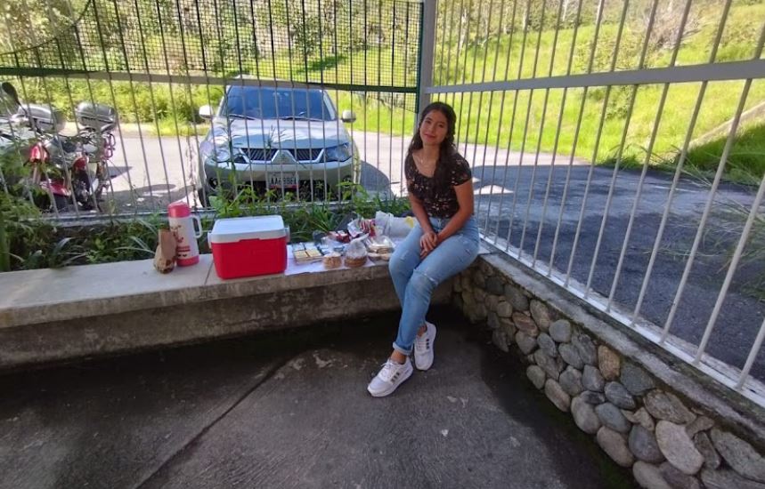 Su día inicia a las 6:00 am, cuando se levanta y con la ayuda de su suegra prepara tortas, empanadas, jugos y café. Luego sube a la facultad y durante toda la mañana, de 8:00 am a 12:00 pm, se dedica a vender desayunos y postres. En ocasiones, mientras ella está en clases, su suegra se queda atendiendo las ventas.