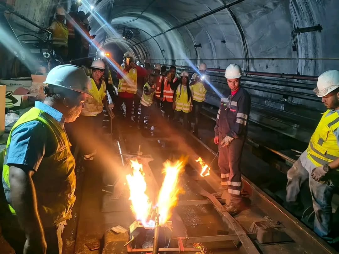 Para ello, un equipo de 24 especialistas aplicó técnicas de soldadura aluminotérmica para asegurar la continuidad de la vía y optimizar el desplazamiento de los trenes.