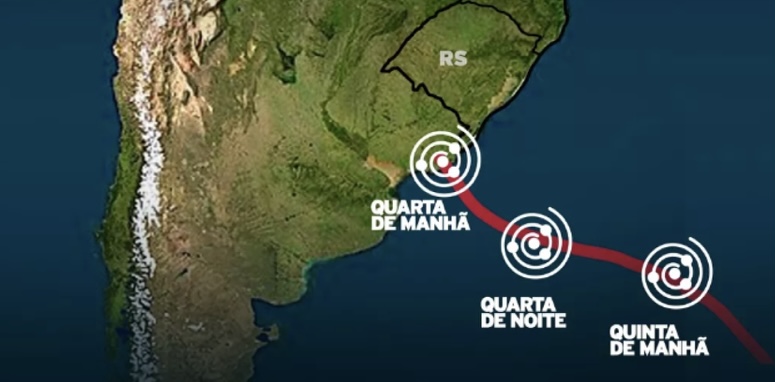 En la imagen que compartió en su sitio web, se puede ver la ruta del ciclón. Mañana de mañana, se muestra justo al lado de Uruguay, mañana de noche se aleja bastante en dirección sudeste y ya para el jueves está bastante alejado del continente.