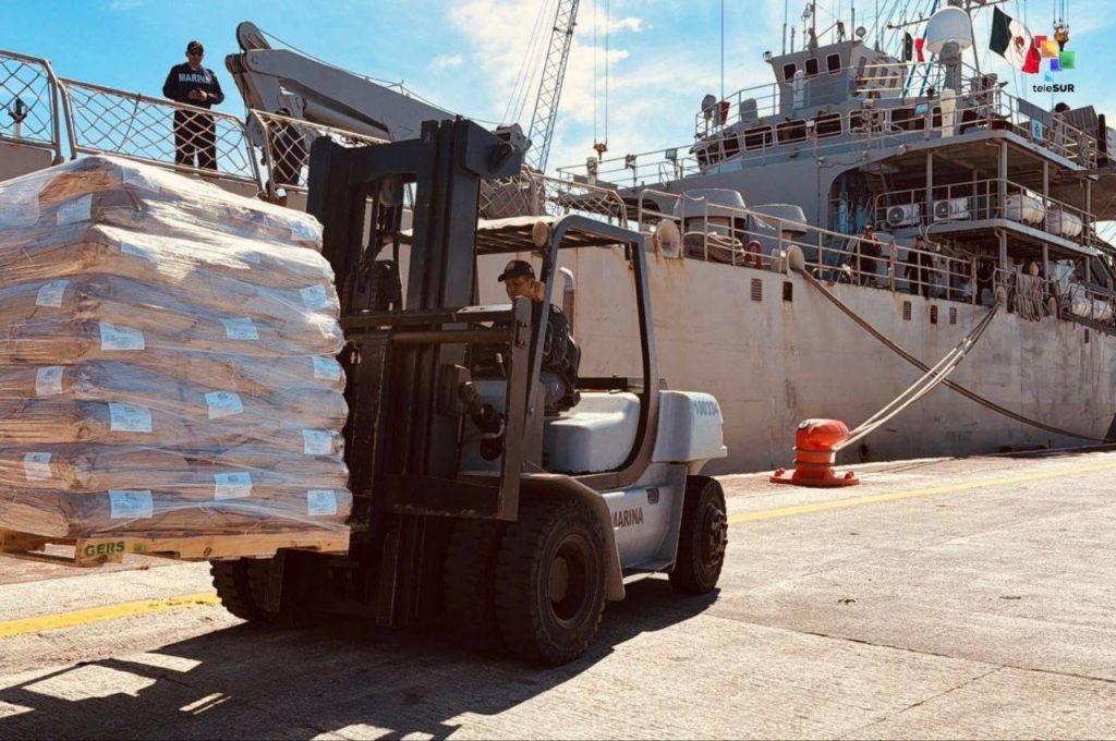 El Gobierno de México informó, además, que esta es solo una fase de la operación, pues aún se encuentran en resguardo 1,500 toneladas adicionales de leche en polvo y frijol que serán enviadas en embarques posteriores.