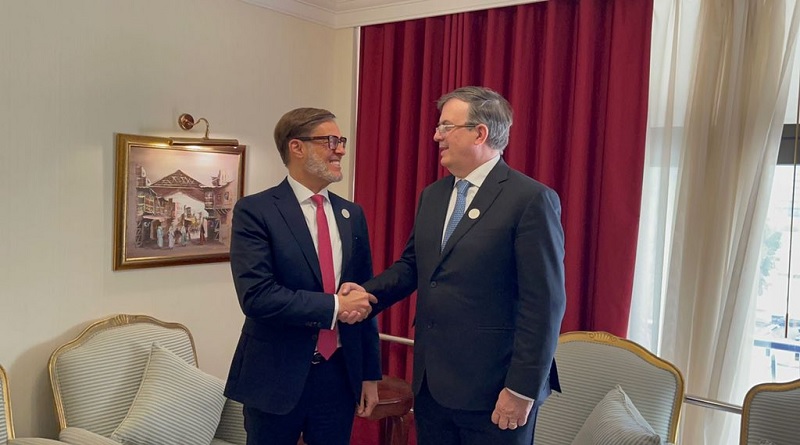 «En reunión con el secretario de Relaciones Exteriores de México, Marcelo Ebrard, revisamos aspectos y perspectiva de la cooperación bilateral, y resaltamos la importancia de América Latina y El Caribe en espacios de diálogo e intercambio global de visiones, como el Foro de Doha».