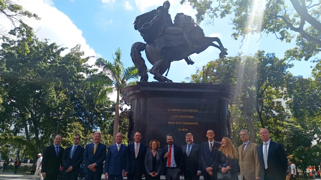 Un total de 12 europeos se tomaron una foto al frente de la estatua de Simón Bolívar, en la plaza homónima de la ciudad capital.