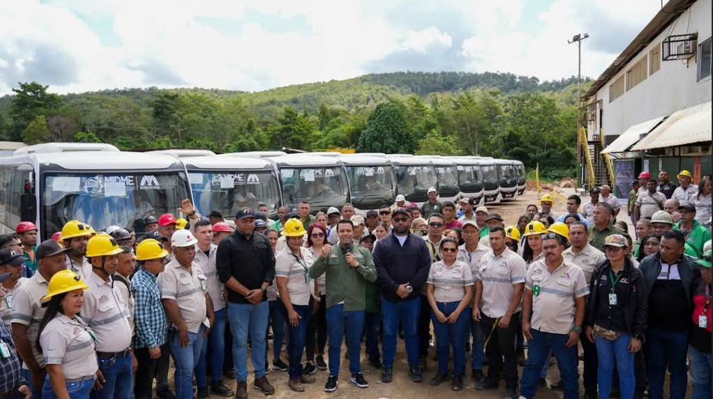 En un acto significativo realizado en las instalaciones de Mina Colombia, el Ministro del Poder Popular de Desarrollo Minero Ecológico, Héctor Silva, en representación del Presidente Nicolás Maduro, llevó a cabo la entrega de 12 autobuses y 2 tractores destinados a la clase trabajadora del sector minero. Con esta iniciativa se busca mejorar las condiciones de trabajo y transporte de quienes día a día contribuyen al desarrollo del Motor Minero de Bolívar.