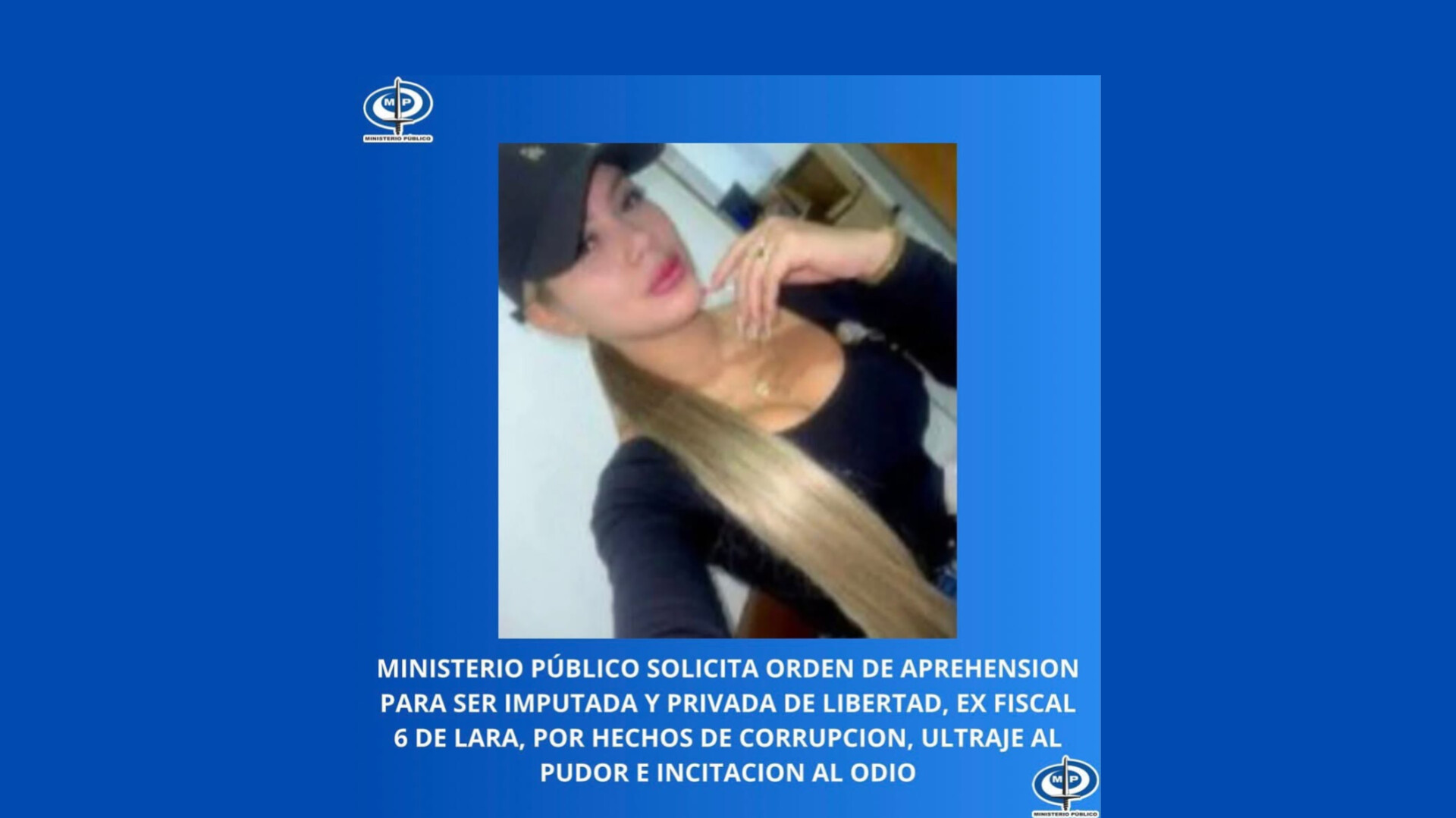 El Ministerio Público emitió este jueves una solicitud formal de orden de aprehensión contra la abogada Darling Ortiz, quien se desempeñaba como Fiscal 6 del estado Lara. La medida busca que la exfuncionaria sea imputada y, de ser procedente, privada de libertad mientras se adelantan las investigaciones correspondientes.