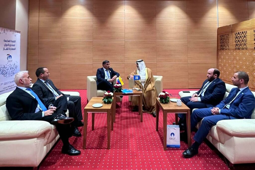 En el marco de la realización de la 26° Reunión Ministerial Extraordinaria del Foro de Países Exportadores de Gas (GECF por sus siglas en inglés), el ministro del Poder Popular de Petróleo, Pedro Rafael Tellechea, sostuvo un importante encuentro con Haitham Al Ghais, secretario General de la OPEP, a fin de evaluar el contexto actual del mercado petrolero mundial y fortalecer la alianza energética entre el órgano rector y Venezuela. Además, el titular de la cartera petrolera nacional, suscribió la Alianza Estratégica del Proyecto de Sísmica Integrada Multicliente, para el proceso de cuantificación de las reservas de gas en Venezuela, cuyo efecto es posicionar a Venezuela entre los 5 países con mayores de reservas de gas en el mundo. “Hoy primero de marzo, desde Argelia, en el Foro de Países Exportadores de Gas, pudimos firmar la Alianza estratégica del proyecto de sísmica multicliente, para cuantificar todas las reservas de gas de Venezuela, una gran victoria para el presidente Nicolás Maduro Moros, y para Venezuela. No habrán sanciones, no habrá bloqueo que detenga a la poderosa PDVSA, seguimos avanzando seguimos luchando por Venezuela, vamos por el camino correcto para la recuperación energética que nos posicionó a Venezuela como uno de los primeros países exportadores de petróleo, ahora vamos a ser, uno de los primeros países exportadores de gas”, indicó. En el marco de esta jornada de trabajo en la República Argelina Democrática y Popular, el ministro Tellechea, sostuvo múltiples encuentros bilaterales con sus homólogos de Argelia, Trinidad y Tobago, Catar, Egipto, entre otros; con el objetivo de afianzar las políticas de cooperación, complementariedad y el apoyo mutuo entre las naciones con grandes potencialidades energéticas. Recordemos que Venezuela, con sus enormes reservas de crudo, gas, y otros minerales es una excelente apuesta para estabilizar y repotenciar el mercado energético mundial.