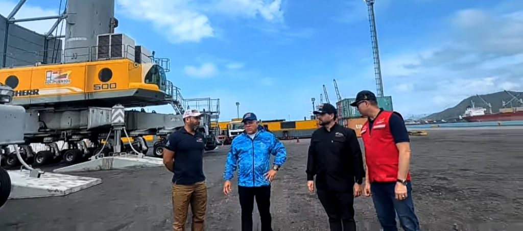 La jornada inició en las instalaciones de Bolipuertos – Puerto Cabello, donde el titular de la cartera de transporte, junto al presidente de Bolipuertos, Germán Gómez Larez, presidente de Bolipuertos y el viceministro de Transporte Acuático, David Quintana, evaluó el desempeño de la maquinaria de carga y descarga.