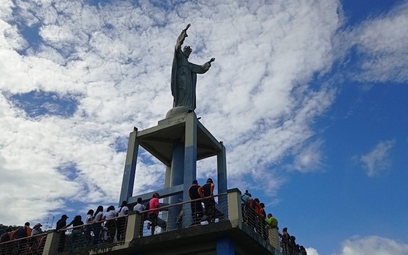 La figura de Cristo, de concreto armado, es un símbolo protector que bendice al pueblo y se divisa desde cualquier punto de la localidad. Este mirador no es solo un lugar de contemplación, sino también un espacio de esparcimiento, meditación y reflexión. La subida a la colina es una experiencia gratificante que culmina con una vista de los techos de teja roja de las casas coloniales, la plaza, el malecón y las playas circundantes.
