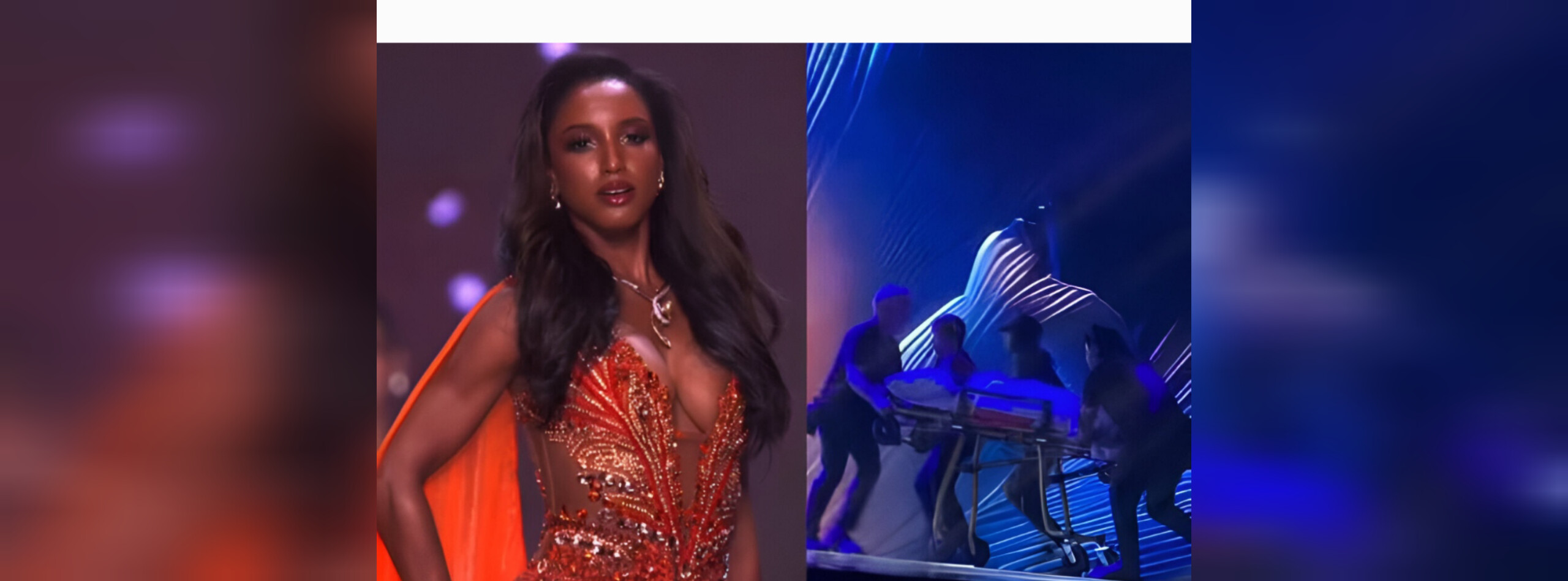 Los asistentes grabaron cómo varios miembros del staff intentaban estabilizarla en una zona con poca iluminación, lo que generó aún más incertidumbre. Minutos después, Miss Jamaica fue colocada en una camilla y trasladada fuera del área principal del auditorio para una valoración médica más detallada.