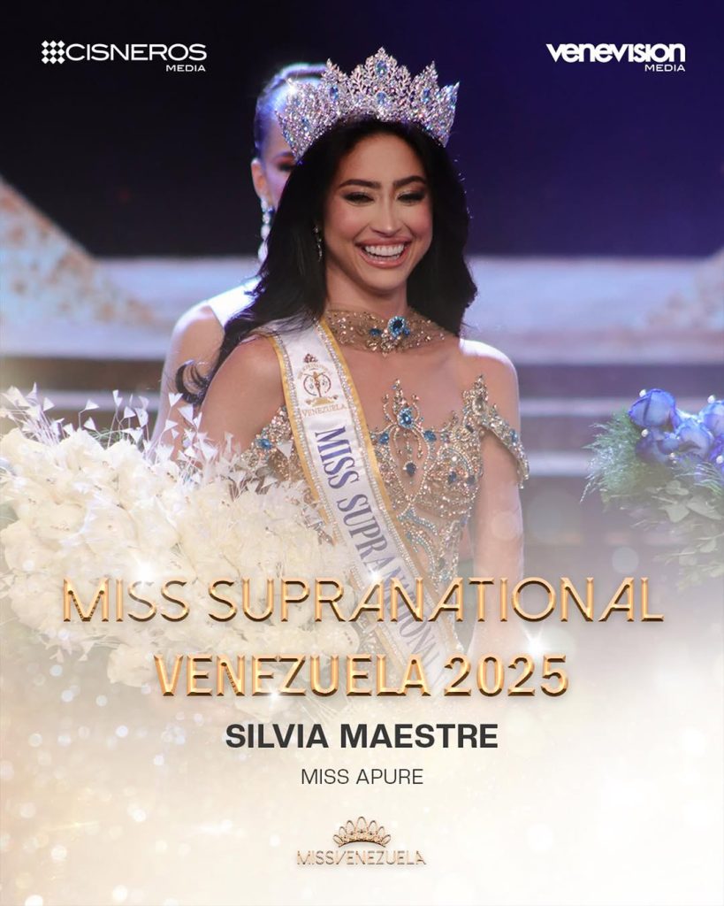* Silvia Maestre: Fue proclamada Miss Supranational Venezuela 2025. La candidata de Apure tendrá la misión de representar al país en el concurso Miss Supranational, cuya relevancia internacional ha crecido significativamente en los últimos años.
