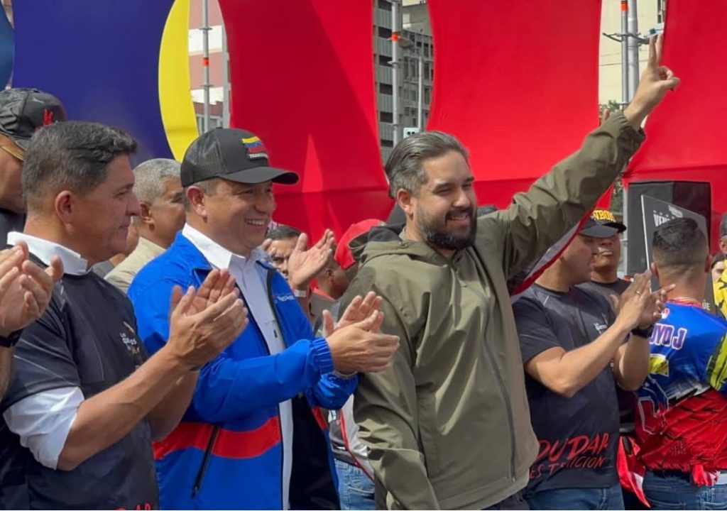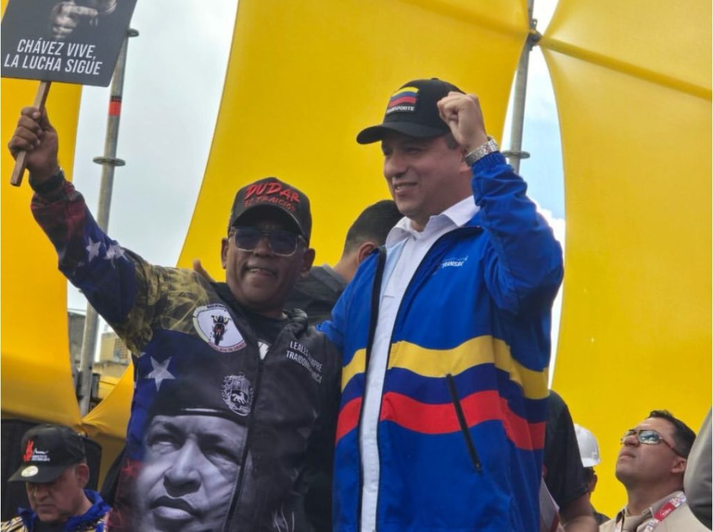 Durante la movilización del Movimiento Social del Transporte Multimodal, en la Av. Bolívar de Caracas este 13 de enero, el ministro de Transporte, Ramón Velásquez Araguayán, destacó la heroica bątalla que está dando el presidente Nicolás Maduro, junto a la primera dama, Cilia Flores.