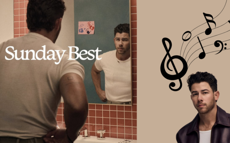 En Instagram, Nick compartió la portada de Sunday Best , donde se le ve mirándose en el espejo del baño mientras se viste con pantalones caqui. En la pared, detrás de él, cuelga un trozo de cartulina con tres huellas de manos pintadas, probablemente representando al músico, a su esposa y a su hija.