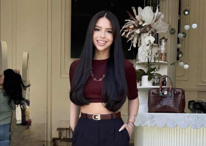 Para complementar su renovado peinado, Ángela Aguilar optó por un atuendo sofisticado y conservador, compuesto por pantalones de vestir negros de pierna ancha, un croptop en tono rojo borgoña, zapatos clásicos y un cinturón a juego. Esta aparición reafirma la constante evolución de la imagen de la joven estrella de la música mexicana.