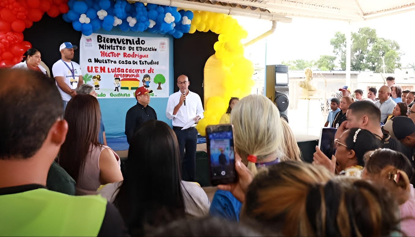 «Hoy inicia una recuperación integral de esta escuela; una institución que, gracias a los esfuerzos de la alcaldía, la comunidad y nuestras füerzas armâdas, ha mantenido sus puertas abiertas. Debido a la alta matrícula de hasta 45 alumnos por aula, la infraestructura presentaba un desgaste natural que hoy estamos atendiendo para devolver la calidad a la educación de nuestros nïños», afirmó al gobernador de la entidad, Neil Villamizar, quien junto al ministro de educación, Héctor Rodríguez, y el viceministro Williams Gil, inspeccionaron los avances de estas labores.