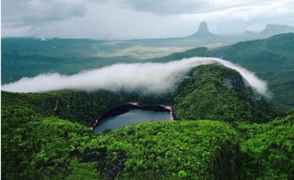 El Lago Leopoldo, con sus aguas de un tono té oscuro, producto de la rica descomposición vegetal de la selva que lo rodea, es un espejo natural enclavado en la zona más occidental del Escudo Guayanés. Mide aproximadamente 380 por 240 metros, y alcanza profundidades de hasta 20 metros, abarcando una superficie de 7.3 hectáreas. Su origen es un misterio, sin ríos que lo alimenten o drenen de forma aparente, lo que alimenta leyendas y misticismo a su alrededor.
