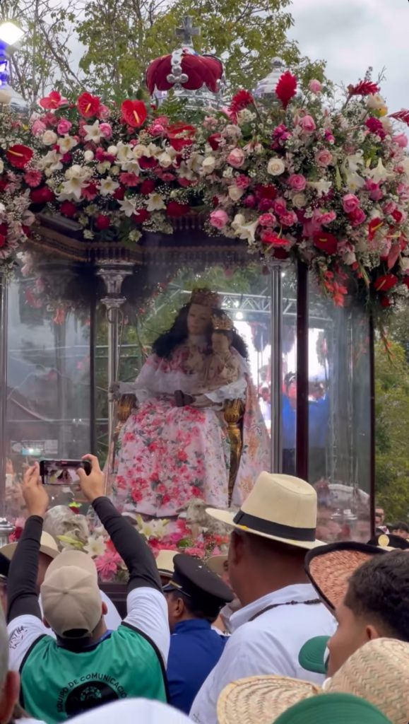 Tras la bendición final, la imagen de la «Pastora de las Almas», vestida para esta ocasión con los colores que simbolizan la devoción de su pueblo, cruzó el umbral del templo sobre los hombros de sus cargadores. Entre aplausos y canticos, la procesión tomó rumbo hacia la avenida Lara.