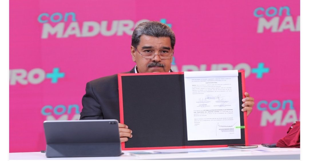 “Ley para la atención integral a las personas con trastorno del espectro autista, trabajada y aprobada por la AN de la República, la verdadera Asamblea Nacional de Venezuela, que eligieron ustedes en 2020, que se instaló el 5 de enero de 2021 y que a la cita callada va legislando y trabajando por los derechos sociales del pueblo”, dijo el presidente Maduro, junto a la Primera Combatiente, Cilia Flores, quien presentó en el espacio el abordaje realizado a un centro educativo con niños y niñas con discapacidad intelectual.