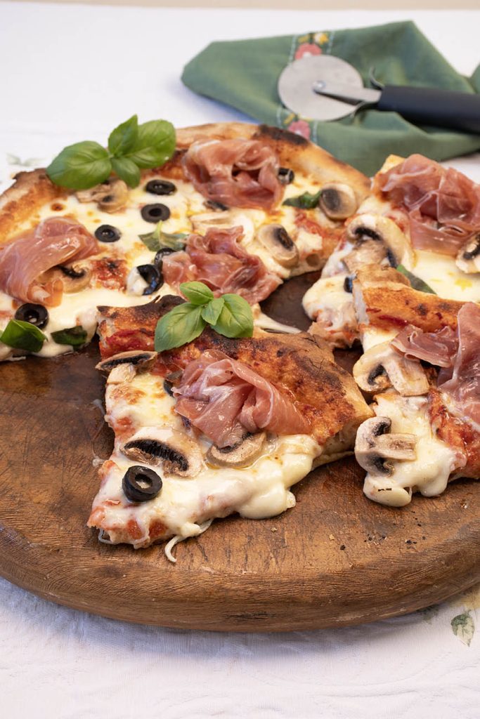 Pocas cosas hay tan reconfortantes como preparar una buena pizza casera desde cero, cuidando cada detalle y respetando los tiempos para conseguir una masa ligera, elástica y llena de sabor. En esta ocasión, la combinación es todo un acierto: la intensidad del jamón serrano, la jugosidad de los champiñones, el contraste de las aceitunas negras y el aroma inconfundible del orégano y la albahaca, todo ello fundido sobre una capa de queso que se derrite suavemente sobre la salsa de tomate.