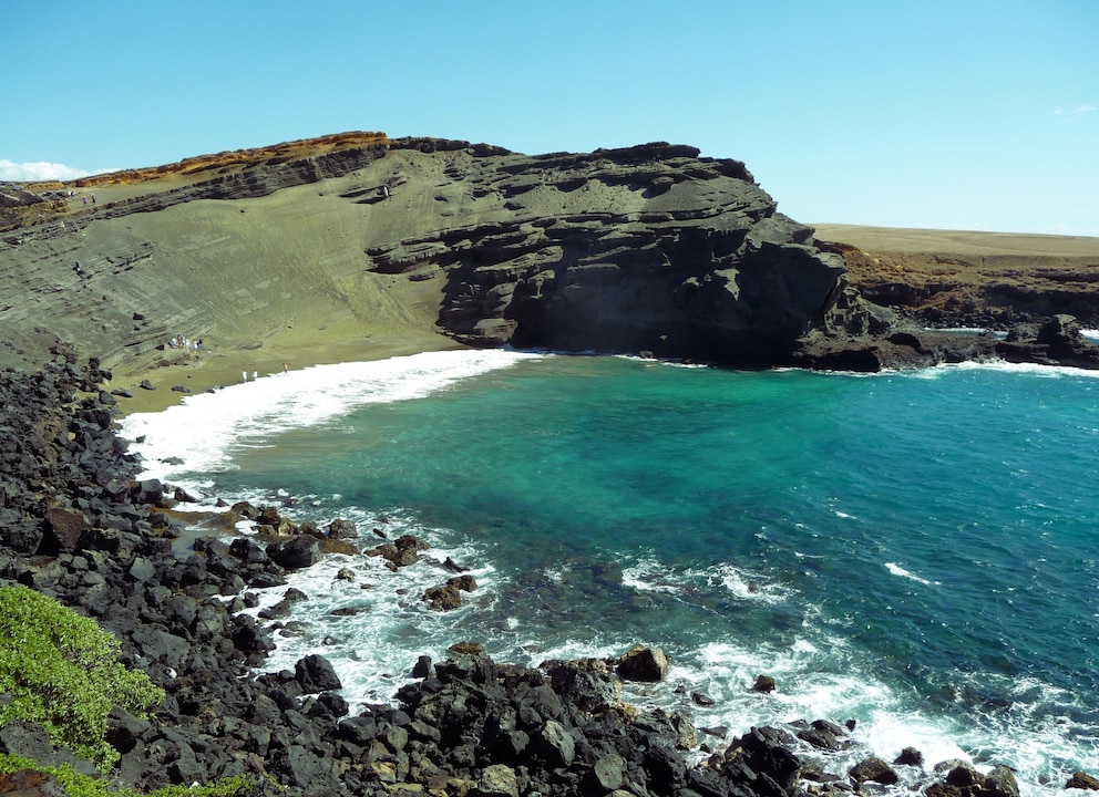 En la isla grande de Hawái, cerca del punto más al sur de los Estados Unidos, se encuentra Papakolea Beach, reconocida como uno de los principales destinos globales por su singular arena de color verde. En el archipiélago de Guam, territorio estadounidense en Micronesia, se encuentra Talofofo Beach, cuya arena muestra una tonalidad esmeralda menos intensa que en Hawái y solo visible en condiciones óptimas de sol. El olivino presente se deposita a menudo en zonas más oscuras de la playa, generando bancos con matices diferentes según la marea y el clima.
