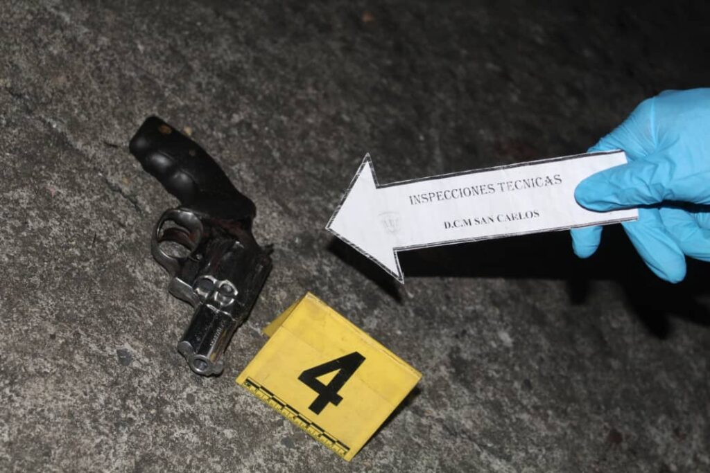 Se conoció que en el lugar de los hechos las comisiones de homicidios del Cicpc recolectaron como evidencia un arma de fuego tipo revolver, color plata, marca Taurus, modelo 311, calibre 357 Magnum, con empuñadura de material sintético, sin seriales visibles, Además el antisocial contaba con un amplio prontuario policial de al menos 10 registros policiales por los delitos de droga, violencia y resistencia a la autoridad, robo genérico, porte ilícito de armas y lesiones, este mismo mantenía en zozobra a los habitantes del casco central de esta municipalidad y sus adyacencias.