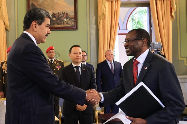 El presidente de la República Nicolás Maduro, recibió este lunes 2 de mayo, en el Palacio de Miraflores, las cartas credenciales del nuevo embajador extraordinario y plenipotenciario de la República de Haití, Jean Mary Vaval, formalizando así su designación como representante diplomático ante el país.