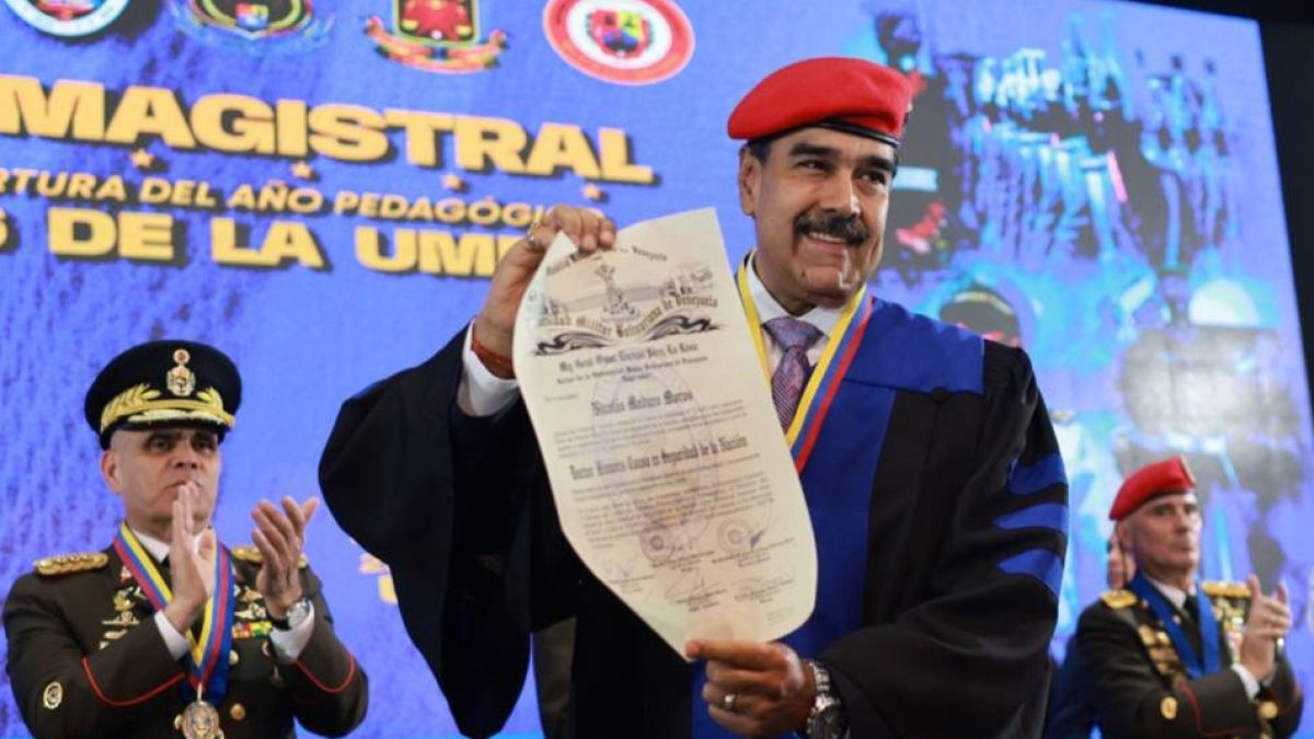 El acto se llevó a cabo en la sede de esta casa de estudios militares, donde el Jefe de Estado, lideró la Lección Magistral con motivo de la apertura del año académico 2025-2026 de la Universidad Militar Bolivariana de Venezuela (UMBV). Se confiere la citada distinción al mandatario nacional ante su excelente manejo de la situación ante las constantes agresïones y amênâzas del imperialismo norteamericano.