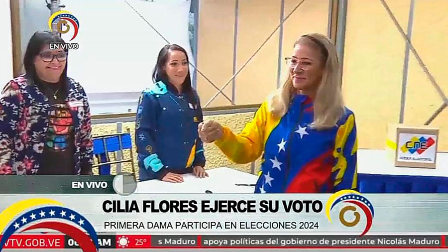 La primera dama de Venezuela, Cilia Flores, ejerció su derecho al voto este domingo desde la Unidad Ecológica Simón Rodríguez, ubicada en el Fuerte Tiuna en Caracas, junto a su esposo y candidato presidencial Nicolás Maduro Moros alrededor de las 06:20 hora local (10:20 GMT).