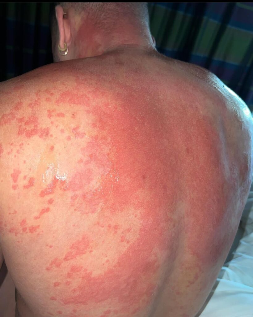 La foto más impactante de su post, es donde mostró la espalda y el cuello cubiertos por un intenso salpullido. Sin embargo, el intérprete de temas como Darte Un Beso, decidió no dar detalles sobre su reacción alérgica, por lo que se desconoce lo que provocó los efectos en su cuerpo. Tampoco se sabe cuándo surgió esta situación ni cuántos días lleva ingresado en el hospital.