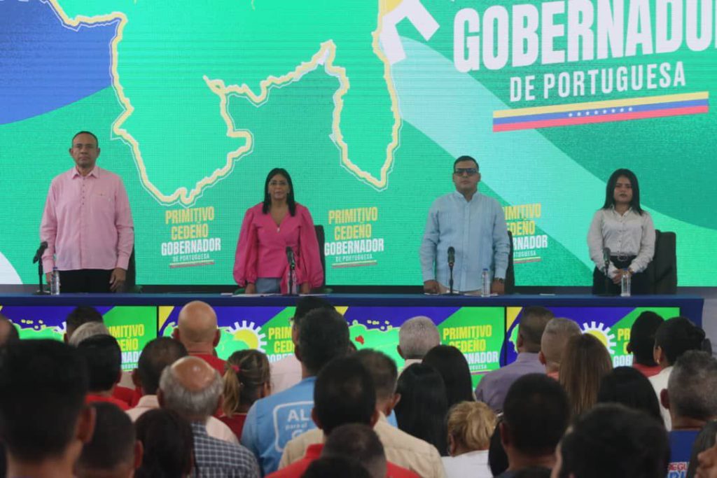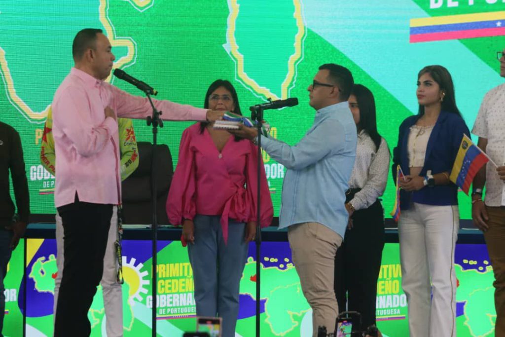 Desde el gimnasio Lara Figueroa de Guanare, con el acompañamiento de los portugueseños, se llevó a cabo este martes 10 de junio el Acto de Juramentación como Gobernador Electo del estado Portuguesa, Primitivo Cedeño, junto a la vicepresidenta Ejecutiva de la República Dra. Delcy Rodríguez.